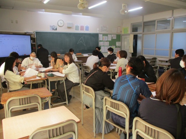 昨日、11月の研究授業に向けて、理科、数学の指導案検討会を実施しました。現職教育のポイントであるアウトプットの場の設定、自己の考えを持ったり修正したりする時間の設定、ペア・グループ活動の仕方などを中心に話し合いました。2教科の先生だけではなく、色々な教科の先生がそれぞれ意見を交流し、指導計画を多角的に検討し、授業の質を高める場となりました。