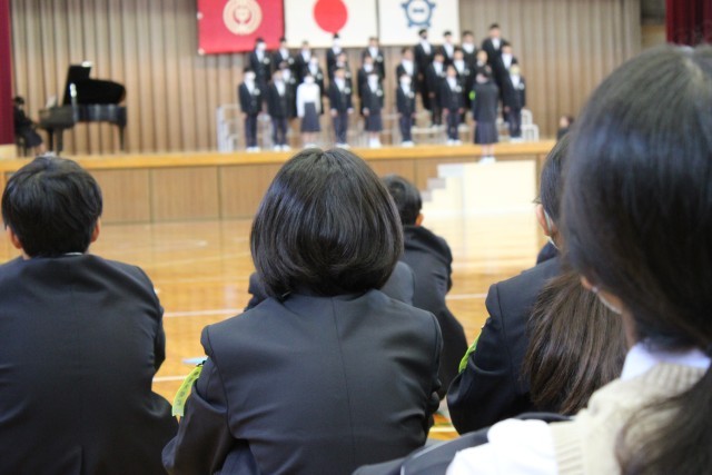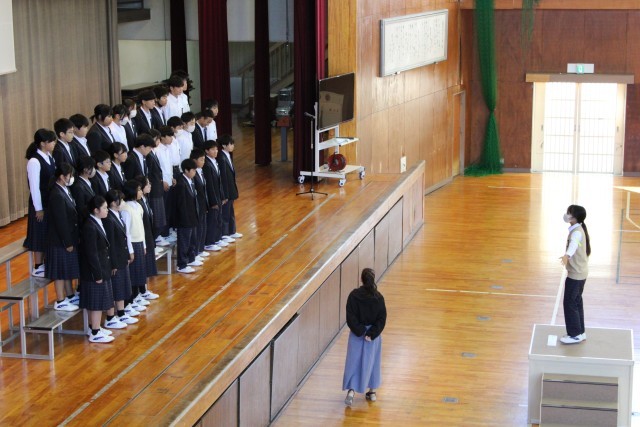 今日は1年生の合唱コンクールリハーサルを行いました。入退場の動きを確認したり、各クラス1分程度歌ったりしました。他のクラスの合唱を聴くよい機会になりました。このリハーサルを今後の練習に生かしてほしいと思います。あと1週間ほどで本番です。1つ1つの練習を大切に!