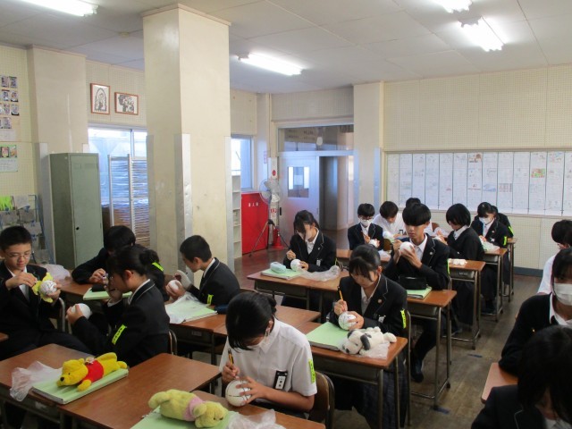 10月29日(水)2年生美術の授業の様子『木目込みまりづくり』