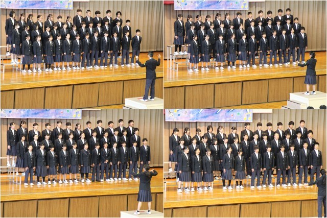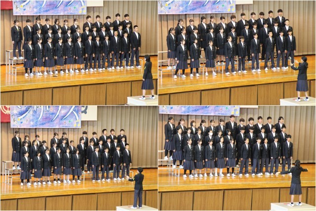 本日の2年生の合唱コンクールの様子です。どのクラスもとてもきれいな歌声で想いの伝わる合唱でした。一人ひとりがクラスのために心を一つにして歌いあげる姿にとても感動しました。この合唱コンクールで得た、仲間と協力することの大切さや、目標に向かって努力する喜びを、これからの学校生活に活かしてくれることを期待しています。