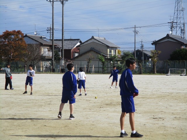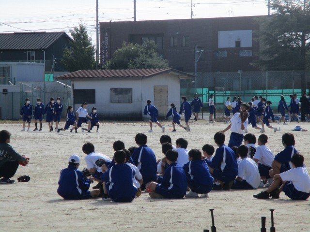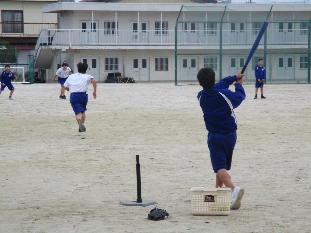 10月はメジャーリーグや日本のプロ野球の優勝決定戦が盛んにニュースで取り上げられ盛り上がっていました。本校の運動場では、1年生男子が歓声を上げながらベースボール型ゲームに興じていました。秋の運動しやすい天候の下、生徒たちは終始笑顔でプレイしていました。