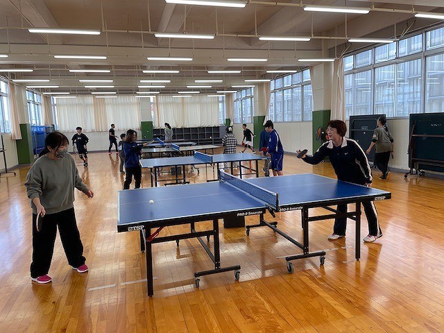 24日(月)穏やかな秋晴れのもと、おやじの会主催のスポーツ交流会を行いました。今年度は、ソフトバレーボールと卓球で交流会です。現役中学生、高校世代の卒業生も参加し、和気あいあいの和やかな雰囲気の中でしたが、白熱した試合も見られました。参加していただいた方、ありがとうございました。