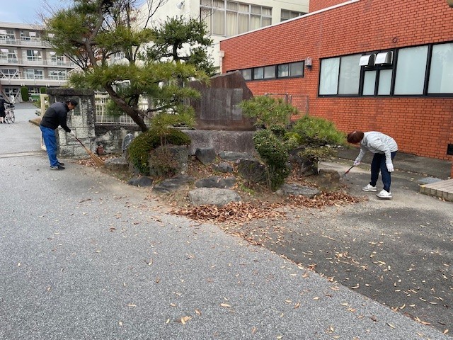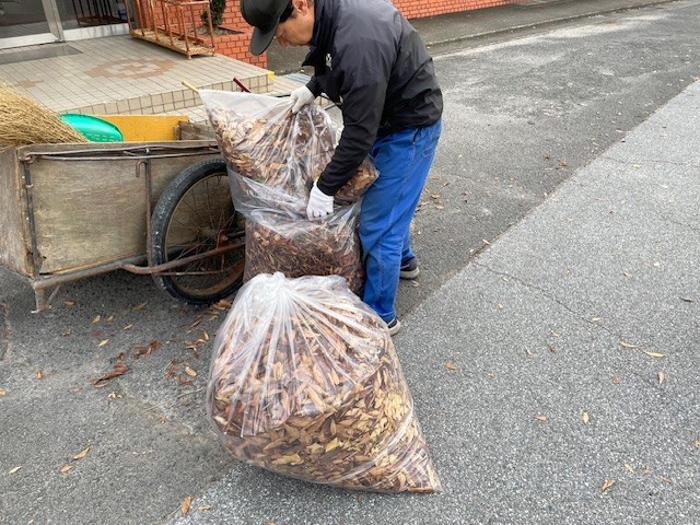 本日、さんかく倶楽部主催による落ちバスターズが行われました。連休明けで、多くの落ち葉が校内に広がっていました。30分の作業で、大きなゴミ袋にたくさんの落ち葉を集めていただきました。おかげで校内がきれいになりました。早朝からありがとうございました。