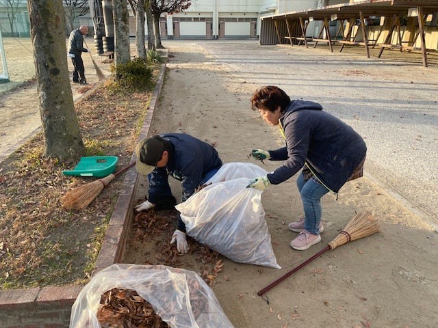 本日PTAさんかく倶楽部主催の落ちバスターズがありました。今日はPTAさんかく倶楽部の方を中心に自転車置き場やレンガ通りなどの落ち葉を集めました。30分ほどの作業でしたが、大きなゴミ袋3つが落ち葉でいっぱいになりました。風が強い中でしたが、ありがとうございました。