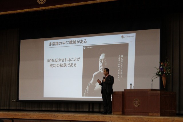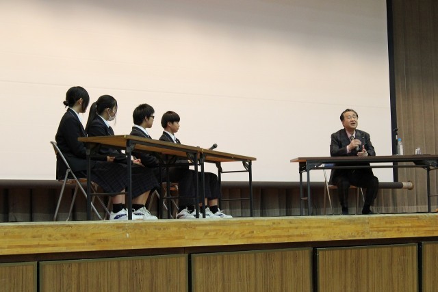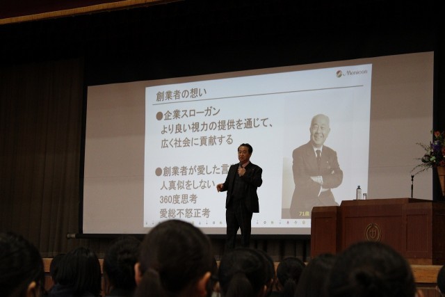 株式会社メニコン名誉会長 田中英成様を講師に迎え、2年生を対象にキャリア教育講演会を実施しました。講演会では講師の魅力あふれるお話に引き込まれ、あっという間の時間を過ごすことができました。「非常識の中にこそ戦略がある」「自分が本当にやりたいと思ったことを、一生懸命やり続ければ、結果はついてくる」という思いを、実体験を交えてお話しくださいました。講師の先生からのお話、代表生徒とのディスカッションなどを通して、生徒たちは「志」の大切さを再確認することができました。今回学んだことを、ぜひ日々の生活や学習に役立てていきたいと思います。