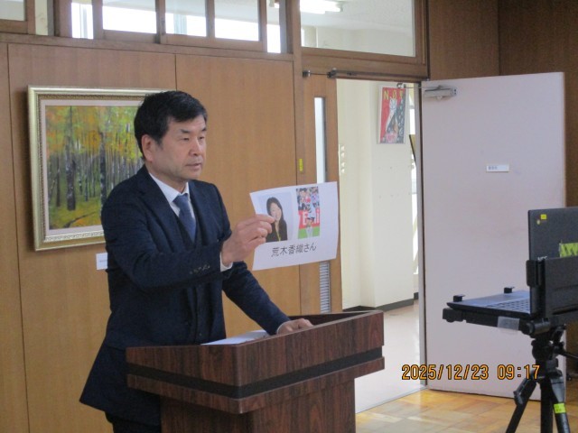 今日は2学期終業式(オンライン)が行われました。校長先生のお話、生徒指導担当と交通安全担当のお話、生徒会の発表とたくさんの内容でしたが、昨日の学年集会のお話と合わせて、冬休みに意識して生活しましょう。また、今日は通知表も配られます。冬休みは短いですが、だからこそしっかりを自分を見つめ直し、3学期はよいスタートが切れることを願っています。それではみなさん、よいお年をお迎えください。