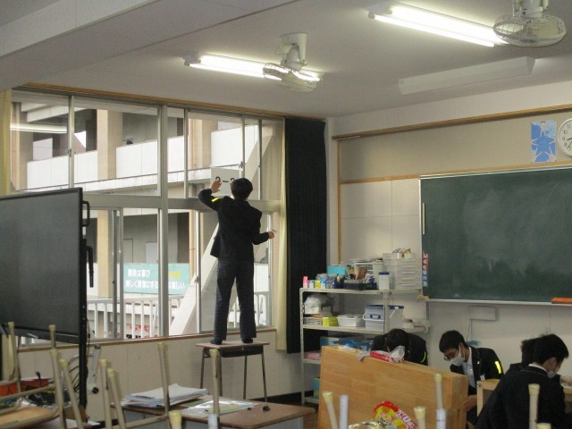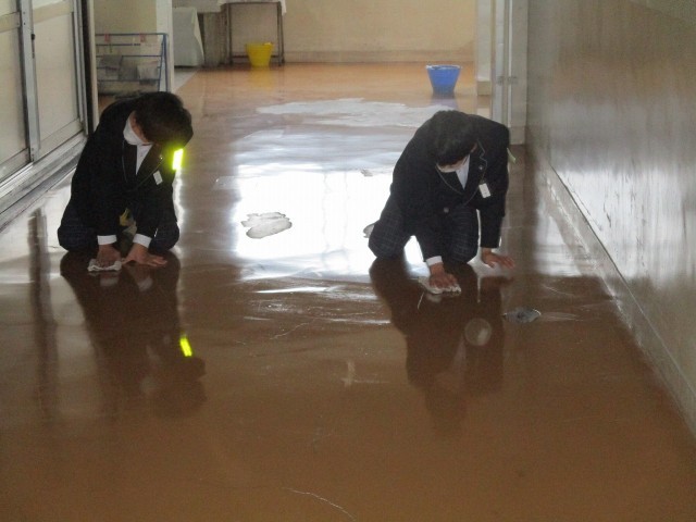 今日は2学期終業式。式の前に大掃除をしました。教室の机・ロッカー、下駄箱の中をきれいに片づけて、雑巾でピカピカにしました。教室や廊下もすみずみまで掃きました。窓ガラスもきれいにしていました。すっきりした気持ちで3学期を迎えることができます。お疲れさまでした。