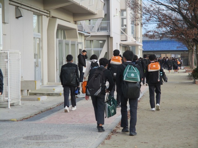 終業式の下校時に生徒のみなさんの中には「よいお年を」とあいさつをしてくれ、ほっこりとした心持ちになりました。「よいお年を」という意味が分かりますか?「よいお年を」は「よいお年をお迎えください」という意味で、さらによいお年を迎えるためには、今年行わなければならないことを今年のうちにやり切りましょうという意味が込められています。さて、あなたが今年行わなければならないことはなんでしょうか?よく考えて、できることを着実に進めていきましょう。