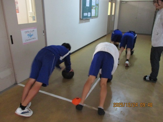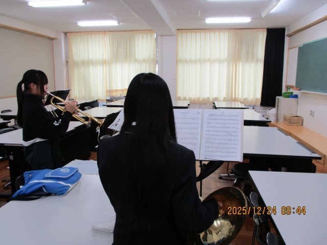 冬休み初日ですが、朝からそれぞれの部活が活動しています。生徒たちは集中して作業したり練習に励んだりしています。