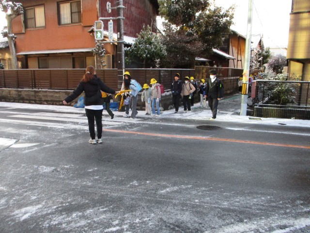 本日PTAボランティアによる交通指導が行われました。路面が凍結していて生徒の登校が心配でしたが、横断歩道や踏切などでPTAボランティアの方に安全を確認していただきとても助かりました。朝の寒い中ありがとうございました。
