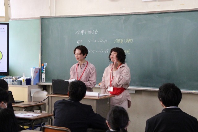 昨日、1年生は 「仕事を語る会」 を実施しました。木曽川中おやじの会の方々の多大な協力を得て、さまざまな分野で活躍されている社会人の方々を講師に、生徒たちが直接お話をうかがう貴重な機会となりました。講師の方々から、「働くうえで大切にしていること」「中学生のうちに身につけておくこと」など、実体験に基づくお話に、生徒たちは熱心に耳を傾けていました。生徒からは「知らなかった職業の魅力を知ることができた」 「自分の『好き』をもう一度考えるきっかけになった」といった感想が多く、進路選択への意識が高まりました。