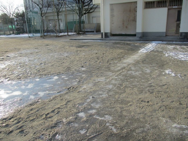 校庭の一部が凍結し、植物にも一面霜が降りていました。それでも、今の季節は、一歩ずつ春の息吹を感じさせてくれます。