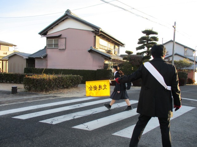 本日、PTAボランティアによる交通指導が行われました。多くの大人の目で見守っていただき、生徒もいつもより安全を意識しながら登校することができていました。朝の寒い中ありがとうございました。