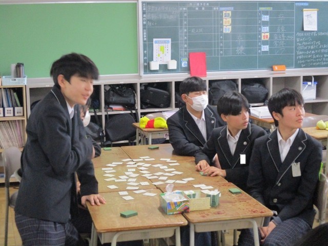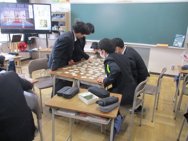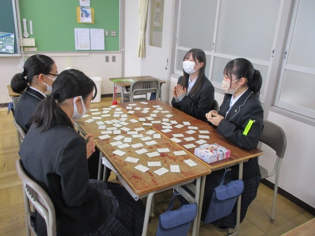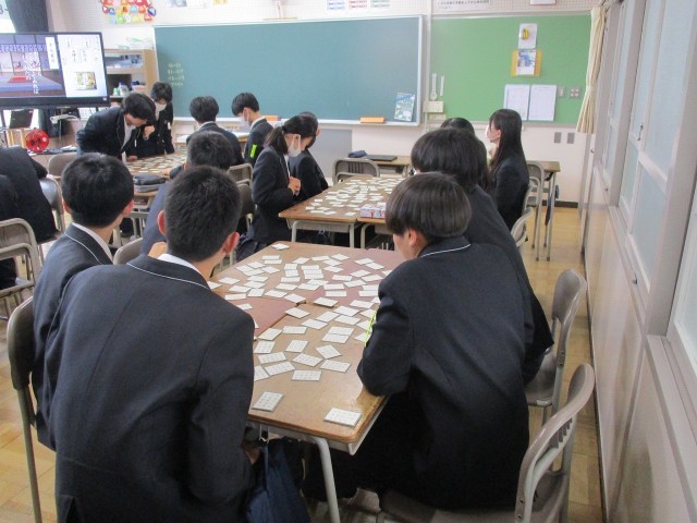 3年生が先週の国語の時間に、百人一首を楽しんでいました。小倉百人一首と聞くとやや堅いものととらえがちですが、競技かるたを題材とした「ちはやふる」という作品があります。その影響で百人一首を知っている人もいると思います。高校の国語では現代文だけではなく、古典も本格的に扱います。百人一首をきっかけにして、今のうちから慣れ親しんでおくとよいですね。