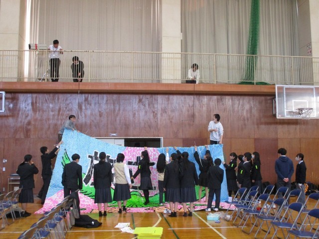 午後から2年生徒、教職員全員で、卒業式の準備を行いました。明日の天気予報も午前中は、おおむね晴れ予報です。321名の卒業生にとって思い出に残る卒業式を創り上げていきましょう。