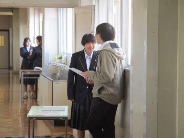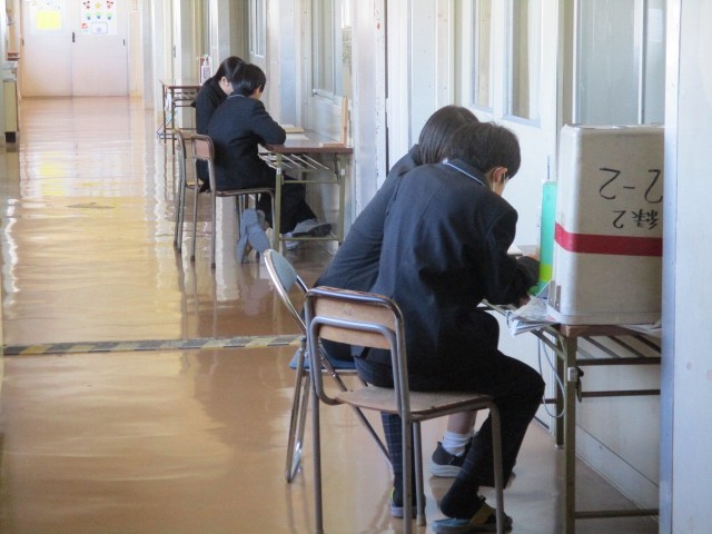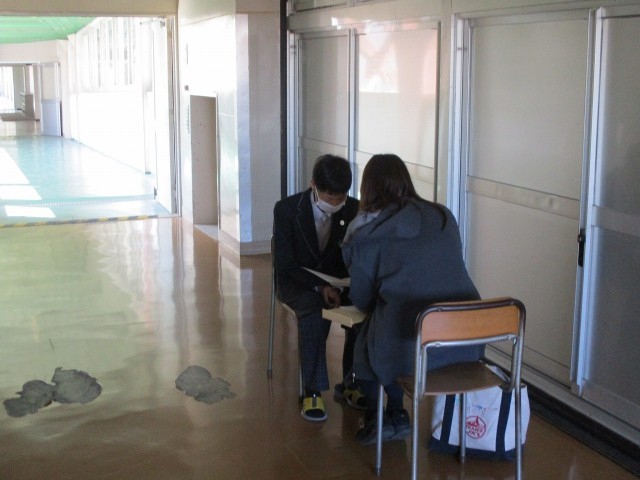 通知表を渡している様子です。担任は学習の成績だけでなく、1年間の頑張りや次年度に頑張ってほしいことなどを一人一人に伝えています。ご家庭ではお子さんの1年間の成長をぜひ認めていただき、4月からの頑張りに向けて背中を押していただければ幸いす。よろしくお願いいたします。