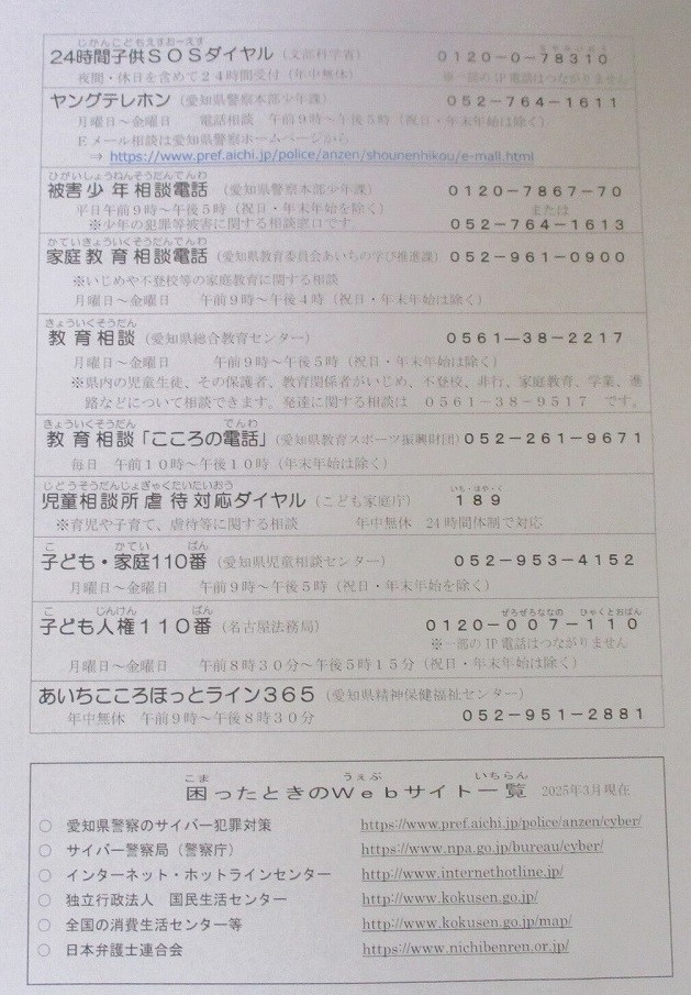 3月25日(水)人権・いじめ対策『相談窓口の活用について』