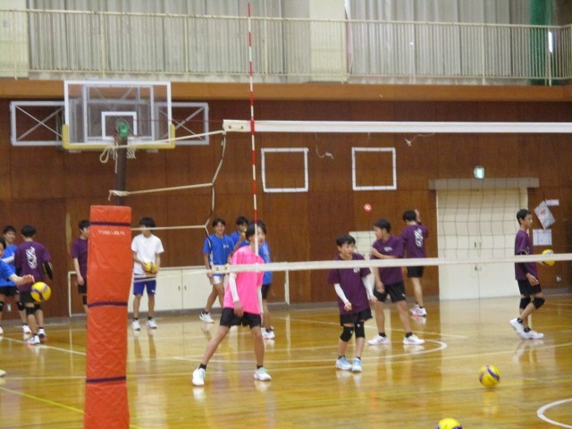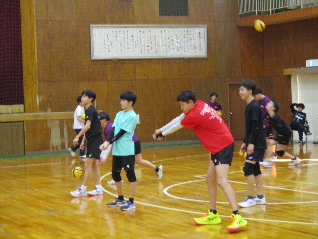 春休み2日目。 午後の体育館は、バスケット部とバレーボール部が元気に活動していました。 今春卒業したバレー部先輩たちがOB戦に来てくれました!体育館が熱気に包まれていました。