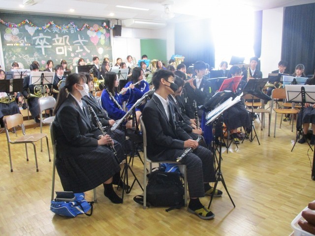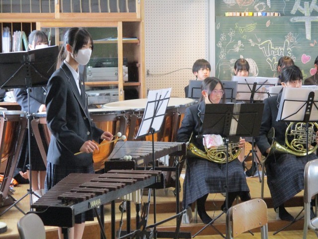 音楽室では吹奏楽部の皆さんが練習に励んでいます。春休みの部活動もあとわずかです。あとは新学期に向けてそれぞれ、準備をしっかりしてほしいと思います。