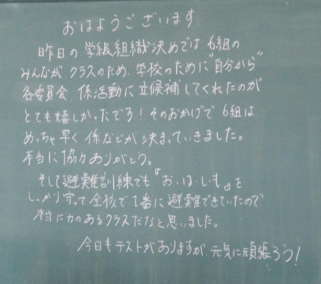 4月14日(火)学校の様子『昨日の自分より1%成長』