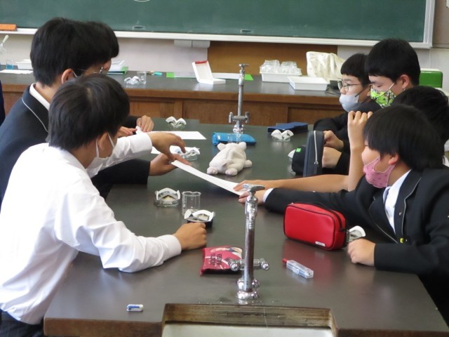 理科の授業では、ペーパークロマトの実験に取り組みました。