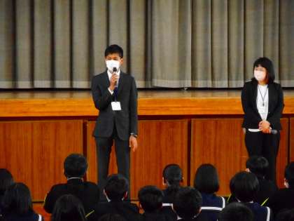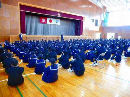 学年集会が行われました。新しくお迎えした先生方の話も真剣に聞いていました。