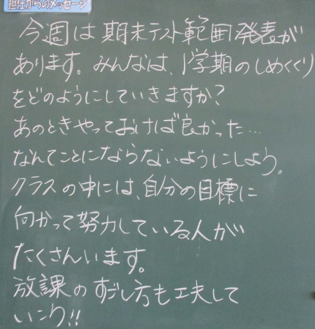 来週は期末テストです。気持ちが焦って落ち着かない、不安だと頭を抱えているかもしれません。自分ができることのみに集中し、最善を尽くすだけと考えて取り組みましょう。