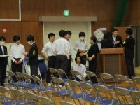 明日実施する3年生を送る会のリハーサルを行っています。立ち位置を確認するメンバ...