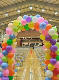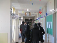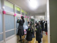 明日の3年生を送る会の装飾が着々と進められています。階段や廊下、生徒昇降口や体...
