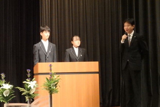 宿泊学習で訪れた沖縄で学んだことや一宮市内小中学校に残る戦争遺構について発表しました。