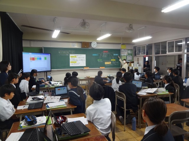 中部中学校では、研究主題を「『深い学び』の実現をめざして~「個別最適な学び」と「協働的な学び」の一体的な充実を通して~」とし、研究授業・研究協議が行われました。