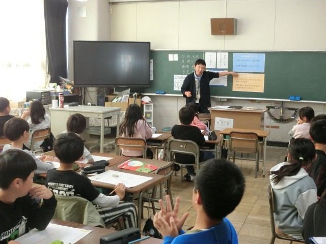 千秋小学校では、研究主題を「自分の思いや考えを豊かに表現し伝え合う児童の育成~思考ツールを使った話し合い活動を通して~」とし、研究授業・研究協議が行われました。