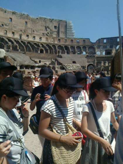 コロッセオの内部を見学しました。ガイドの楽しい説明を熱心にメモしています。