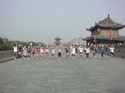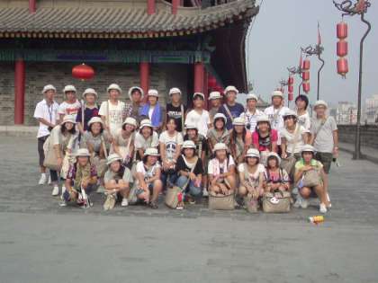 西安の城壁の上で、派遣生徒で手をつないで幅の広さを確かめてみました。今年の西安は、例年になく蒸し暑く湿度も高いそうです。