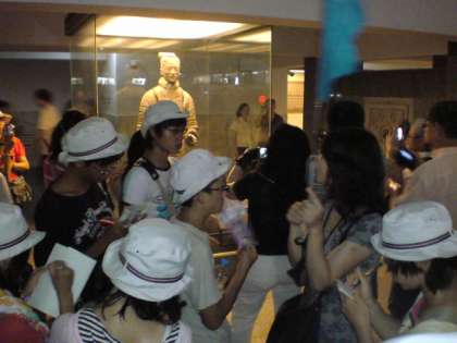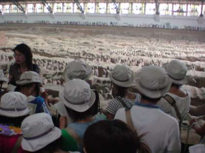 H22・8・11(水)一宮市中学生海外派遣「兵馬俑坑」 公開日 2010/08/11 更新日 2010/08/20 いちのみや夢人材育成事業 派遣5日目、兵馬俑坑の見学。派遣生徒は、1体1体の表情や服装、装備などが違っていて、当時の技術の高さに感動しました。派遣生徒は、兵馬俑の数や埋められている広さについては、社会の授業で学んでいましたが、予想以上のスケールの大きさに触れ、皇帝の権力の強大さを学ぶことができました。