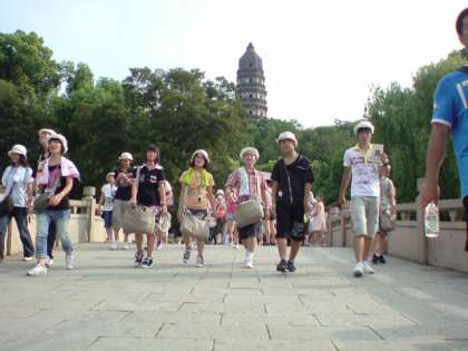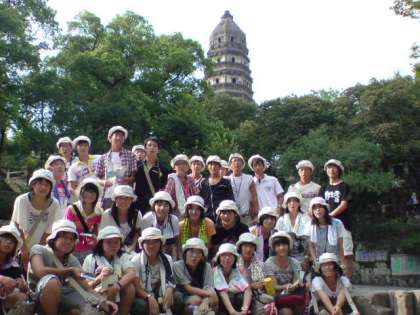 H22・8・13(金)一宮市中学生海外派遣「虎丘&運河めぐり」 公開日 2010/08/14 更新日 2010/08/20 いちのみや夢人材育成事業 虎丘の見学。虎丘塔は15度くらいも北へ傾いて、ピサの斜塔のようでした。派遣生徒は、残念ながら登ることはできませんでしたが、自分の目で見ることができてよかったようです。また、西安の大雁塔よりは小さいようですが、歴史を感じることができました。 運河めぐり。派遣生徒は、東洋のベニスを船の上から見ることができ、大満足であったと報告がありました。