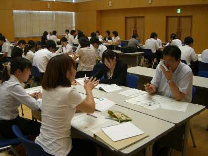 第6回小学校初任者研修会で、道徳指導の進め方について研修をしました。午前中は指導過程の基本形を勉強し、その後ベテランの先生の授業をビデオで観て、資料の提示の仕方、発問の仕方、子どもたちの意見の引き出し方などを学び、さらに学習を深めました。午後は、担当の学年ごとのグループに分かれ、指導員の先生方のアドバイスを受けながら実際に指導案を作成し、作成した指導案をもとにお互いに意見交換をしました。