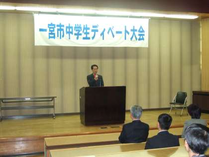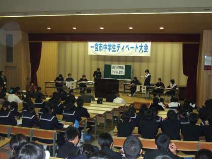 23日(土)は、4つの中学校を会場にして予選大会が行われました。24日(日)は、予選を勝ち抜いた北部中学校、中部中学校、浅井中学校、北方中学校、大和中学校、千秋中学校、大和南中学校、木曽川中学校の8校が参加し、地域文化広場で決勝大会が行われました。決勝大会は、谷一夫市長をはじめとした来賓の方々も出席していただき、盛況なものとなりました。各中学校の選手は、これまで準備してきたことをもとに熱のこもった論戦を繰り広げました。