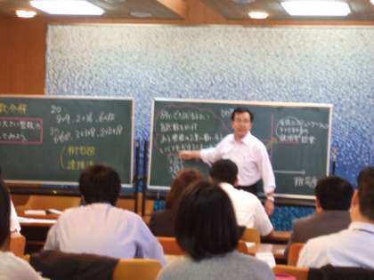 希望者を対象にした、若手教師のための数学教育実践教室が今年もスタートしました。教員を退職された方が講師で、参加された先生方は自らの指導力を向上させるために熱心に研修を受けました。今回を含めて年間15回。次回までの課題も与えられ、充実した会になりました。