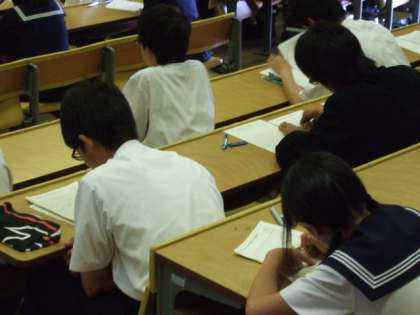 一宮市では、毎年夏休みに中学生の海外派遣事業を行っています。今年も8月6日から13日までの日程で、中国を訪れる予定です。各中学校から推薦された19名と公募で選ばれた13名の計32名で隣国である中国の文化に触れるともに、同世代である中学生と交流します。今日は、公募の13名を選ぶための、第一次(作文)審査。90分間、真剣に取り組んでいました。