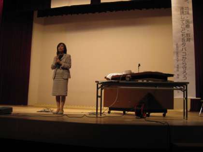 その後、「時はいま、地域・医療・教育 連携してこどもをタバコから守ろう」という演題で京都府立医科大学の准教授よりご講演をしていただきました。タバコが人体に与える影響、とりわけ若年層に及ぼす悪影響について、具体的にお話をしていただきました。