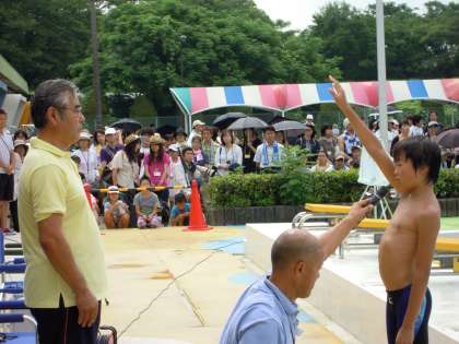 第31回一宮市小学校水泳選手権大会が、尾西市民プールで開催されました。50m自由形、100m自由形、50m平泳ぎ、100m平泳ぎ、50mバタフライ、50m背泳ぎ、400mリレーの7種目で競われました。団体の大会結果は、次の通りです。