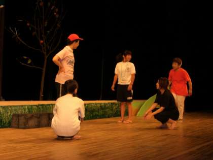 最初は硬い表情だった子役の生徒のみなさんも、劇団の方たちの熱心な演技指導により、みるみる上達していき、生き生きとした演技ができるようになりました。子役の生徒のみなさんは、「家に帰ったらもう一度演技の復習をして、観てくれる人たちの心に残る公演にしたい。」と意気込みを語ってくれました。