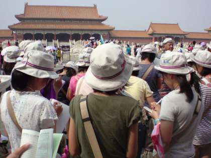 紫禁城を背景に記念撮影をしました。天安門事件が起きた場所とは思えないほど、多くの人が往来し、にぎわっていました。