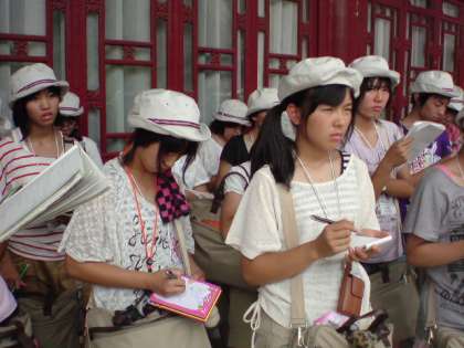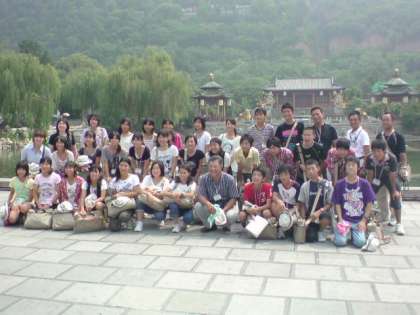 8月10日(水) 一宮市中学生海外派遣「華清池3」 公開日 2011/08/10 更新日 2011/08/10 いちのみや夢人材育成事業 華清池での集合写真の撮影です。心なしか派遣団員の皆さんがたくましくなった気がします。楊貴妃の入ったお風呂をこのあと見に行きます。