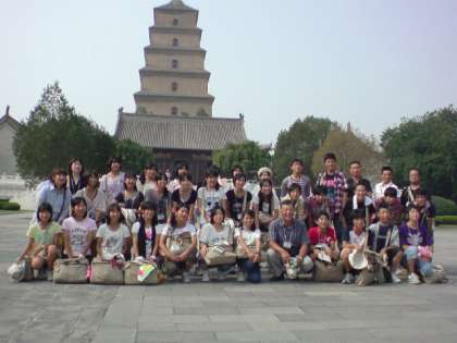 8月10日(水) 一宮市中学生海外派遣「大雁塔2」 公開日 2011/08/10 更新日 2011/08/10 いちのみや夢人材育成事業 大雁塔は初めは五層だったのですが、大改造を行い十層になりました。しかし、その後の戦乱の影響で、今は七層の64mになったそうです。正面から見ると少し西に傾いていることがわかるでしょうか。