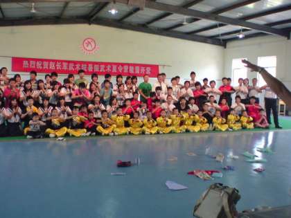 8月11日(木) 一宮市中学生海外派遣「趙長軍武術学院7」 公開日 2011/08/11 更新日 2011/08/11 いちのみや夢人材育成事業 どの生徒も、趙長軍武術学院の生徒と積極的にかかわり合いをもつことができました。また、派遣団としてのまとまりが強くなっていることを皆が感じています。全員が同じポーズをとって記念写真を撮りました。この後、最後の訪問地の上海に空路で向かいます。