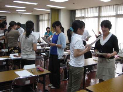 今回は「学習意欲を高める」というテーマで、実習やグループ討議などをおりまぜながら、導入の工夫、ワークシートやテストの工夫など多くを学ぶことができました。