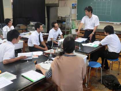 中学校3年生の理科を担当している先生方を対象に講座(理科実践講座としては24回目)を開催しました。前半では、カメラや実物投影機を活用した「地動説の教え方」について学びました。受講者からは、「星や太陽が動いているのではなく、地球が動いていることがはっきりと実感できるので、ぜひ実践してみたい」という意見が聞かれました。後半では、「個に応じた課題の出し方」や「一斉授業での個別指導のあり方」等について、意見交換を行いました。受講者にとっては、半年後に入試を迎える生徒のために、何をしなければいけないかを考えさせられる研修会になりました。