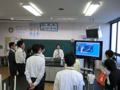 小学校5・6年生を担当している先生方を対象に講座(理科実践講座としては29回目)を開催しました。前半では、学年園にゆるい坂をつくり、水を流して流れのようすやはたらきを調べる予備実験を行いました。水の中に、パーライト(発泡体)やチョークの粉を混ぜることで、上流と下流、川の内側と外側の違いがよく分かることを学びました。後半では、学年別に分かれて、次回の講座で行う予備実験の計画を立てたり、デジタル教科書の活用方法等について話し合いました。